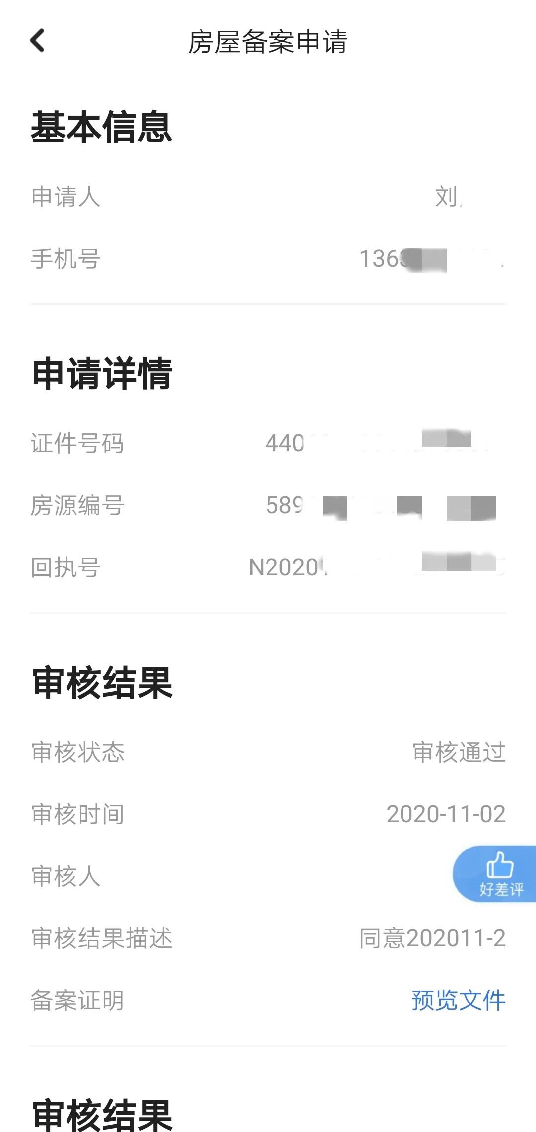 6、查看“房屋备案申请”,点击“预览文件”,右上角“...”分享到微信,在微信下载打印即可。