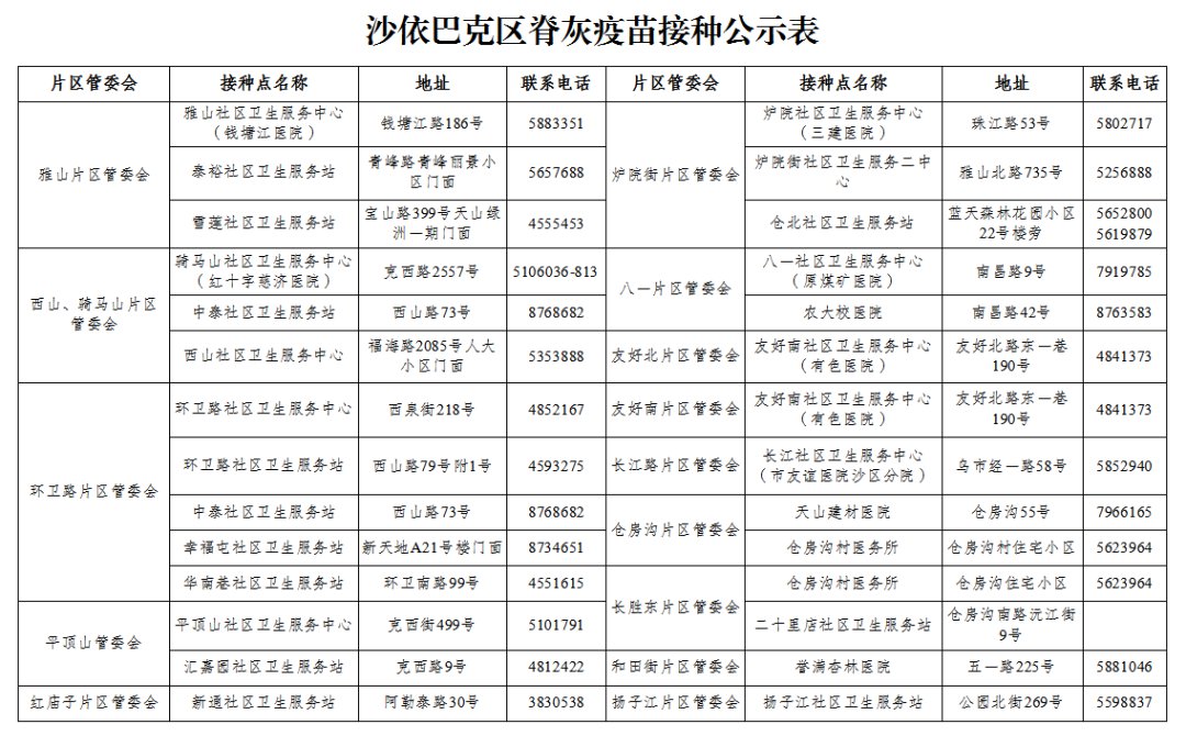 2022年沙依巴克区脊灰疫苗接种点一览表