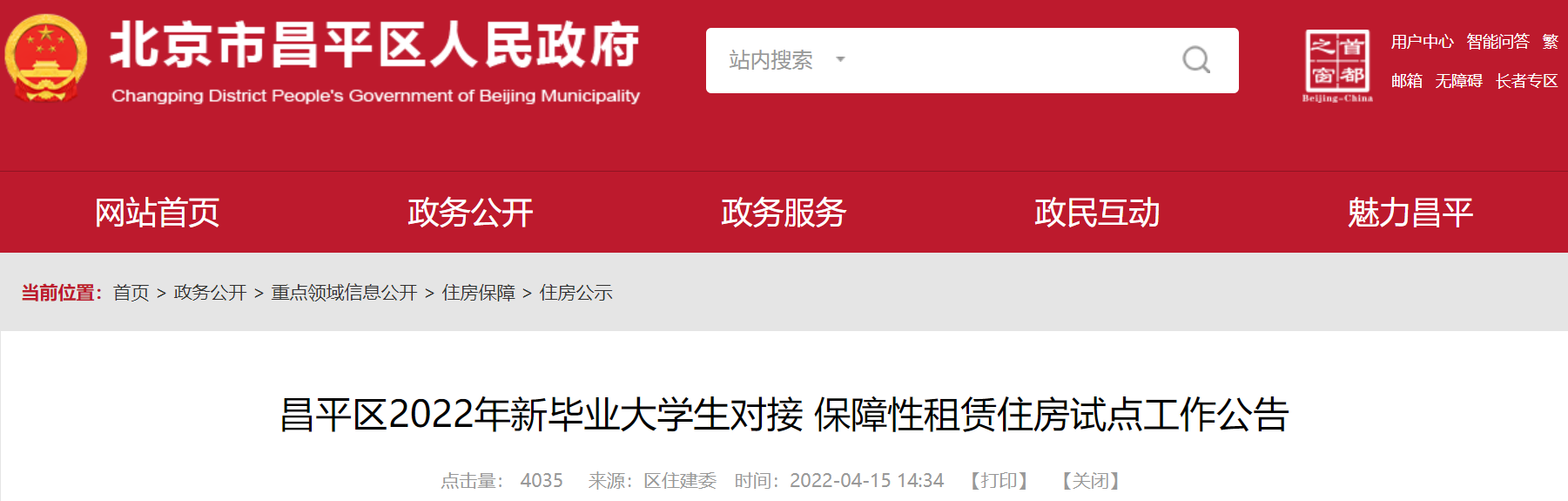 ➤2022北京昌平应届毕业生保障性租赁住房租金