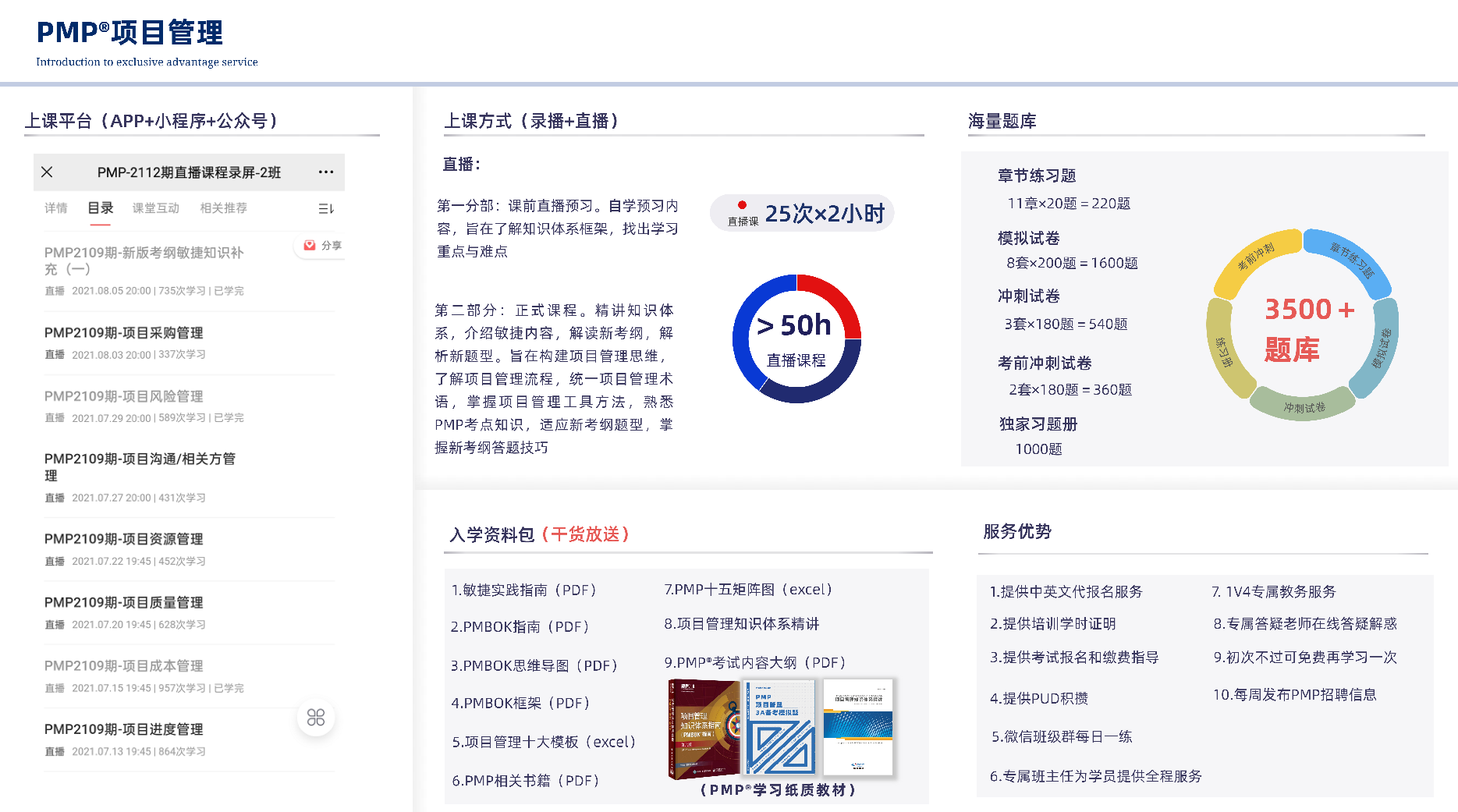 本地宝的PMP培训项目,课程以直播授课(+课后录播)的方式进行,在家就可学习,不会耽误到大家上学及工作哦!