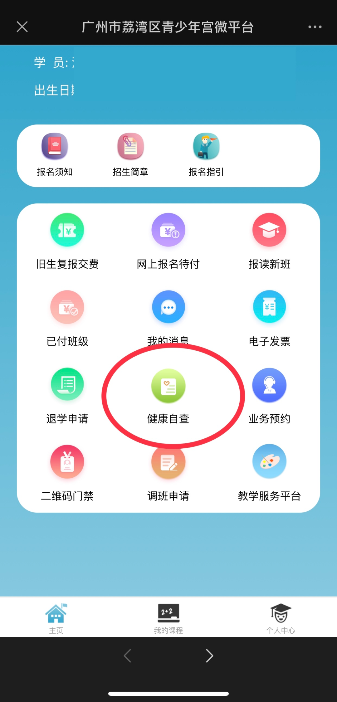 为保障全体师生的身体健康和生命安全,让孩子们健康学习、开心生活,有序开展线下教育教学,请家长和孩子配合以下事项:即日起,在开课前登录荔湾区青少年宫微信公众号的报名平台,上传学生的三码,即健康码、行程卡、粤核酸码(粤核酸2-常规采样应检尽检免费项)。