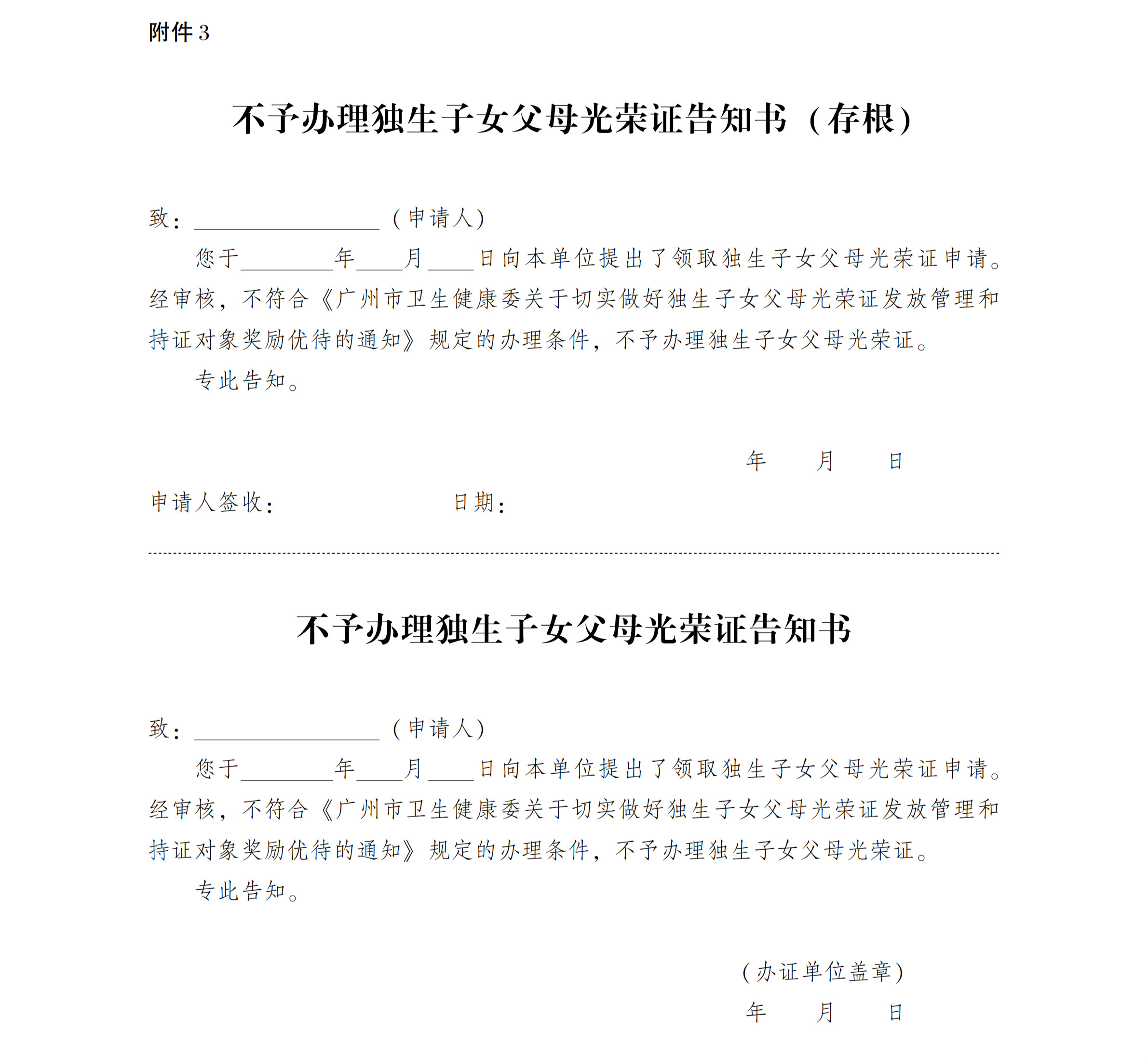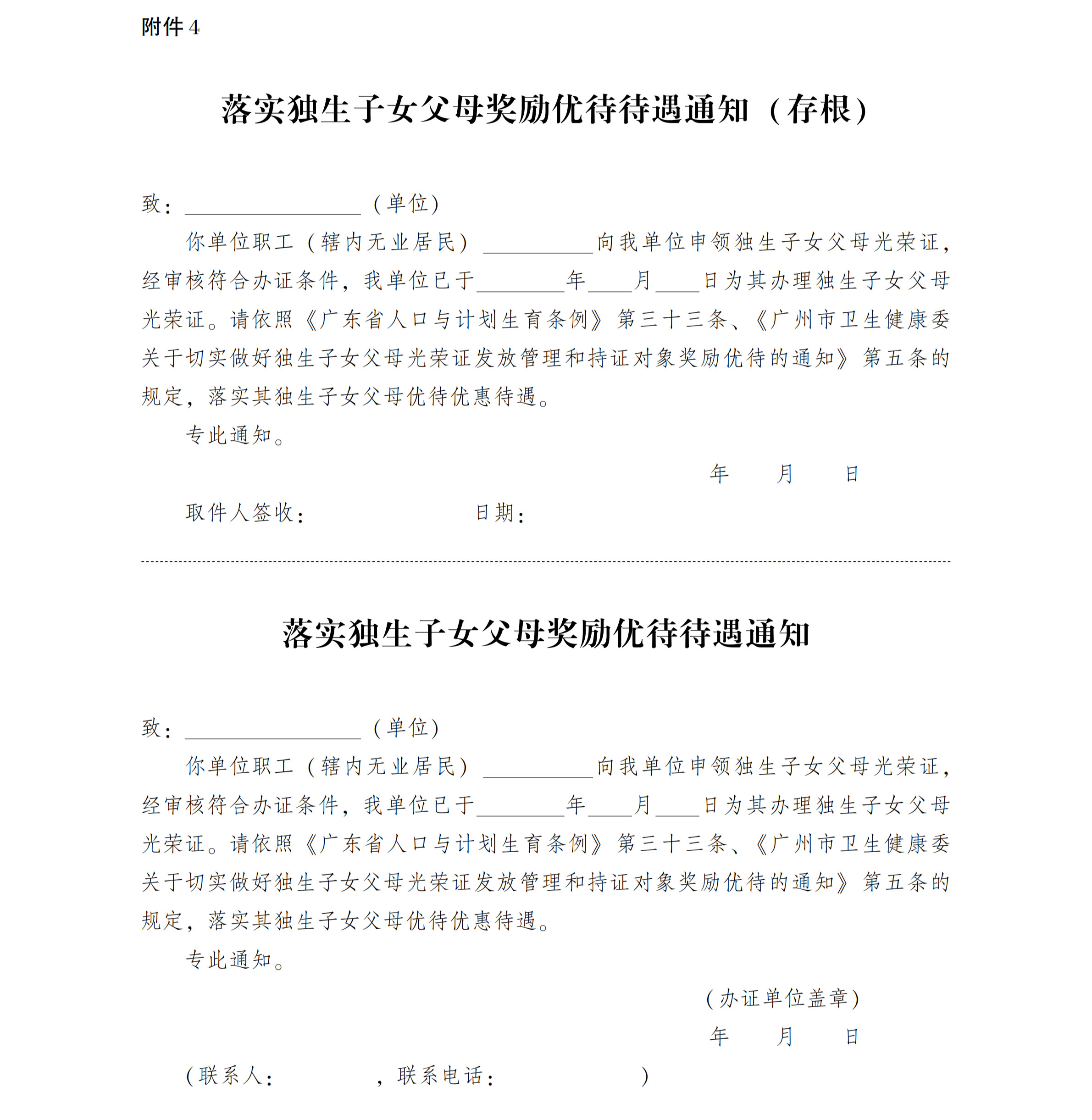 广州市卫生健康委关于切实做好《独生子女父母光荣证》发放管理和持证对象奖励优待的通知