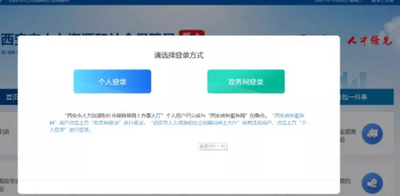 注:“西安市人力资源和社会保障局网上办事大厅”个人用户已完成与“西安政务服务网”的整合。“西安政务服务网”用户点击上方“政务网登录”进行登录,“西安市人力资源和社会保障局网上大厅”原有注册用户,点击上方“个人登录”进行登录。