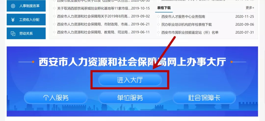 申请入口:西安市人力资源和社会保障局官网