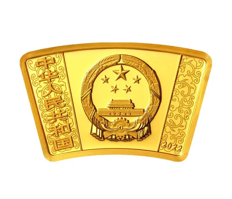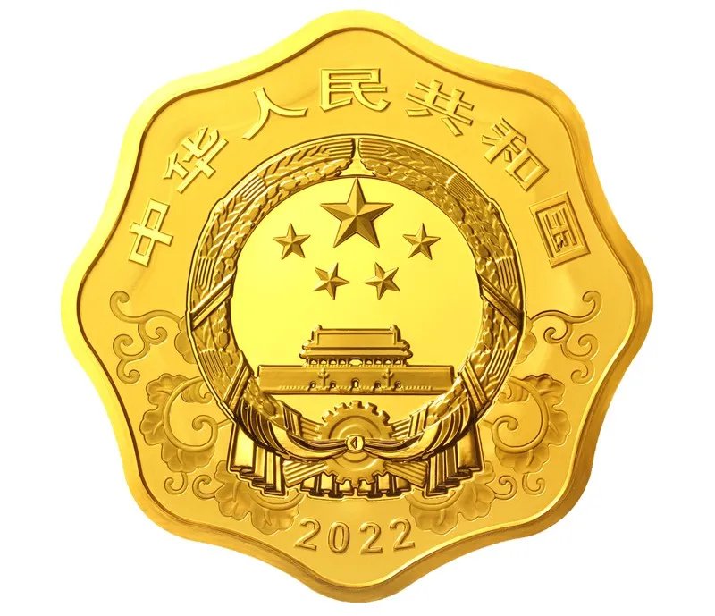 该套金银纪念币正面图案均为中华人民共和国国徽,衬以中国传统吉祥纹饰,并刊国名、年号。