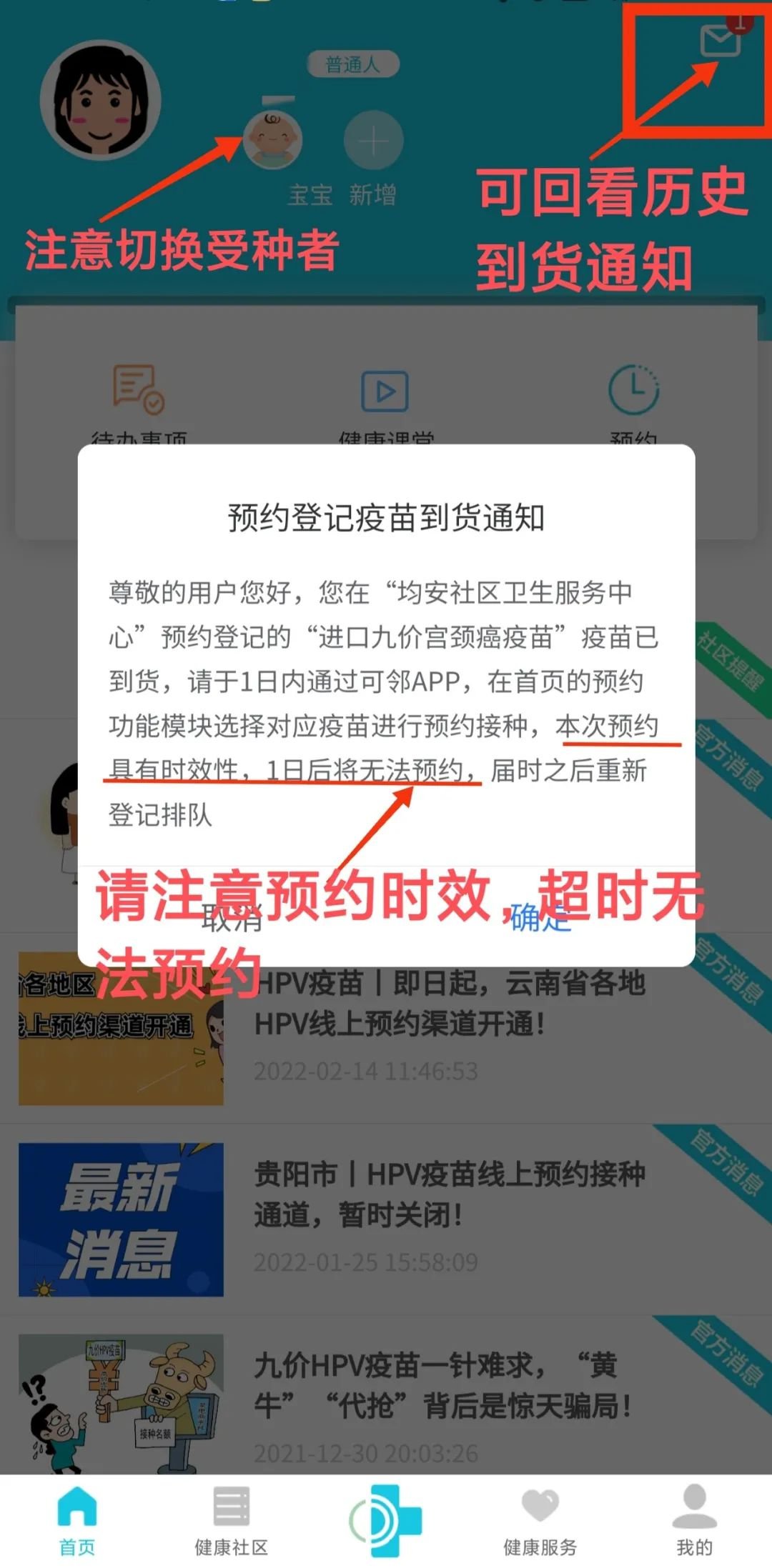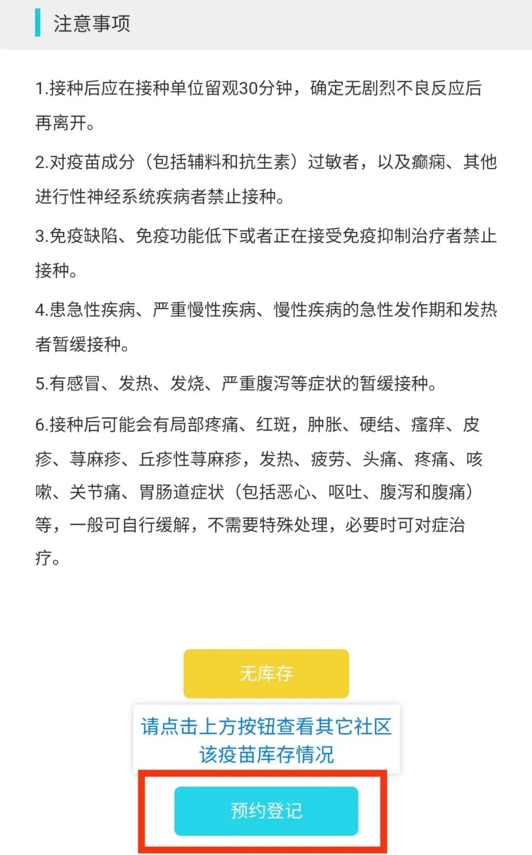 注意:疫苗到货后将在可邻APP上通知预约接种(按登记先后顺序进行通知),收到疫苗到货通知后请尽快预约,预约成功后按日期到门诊接种。