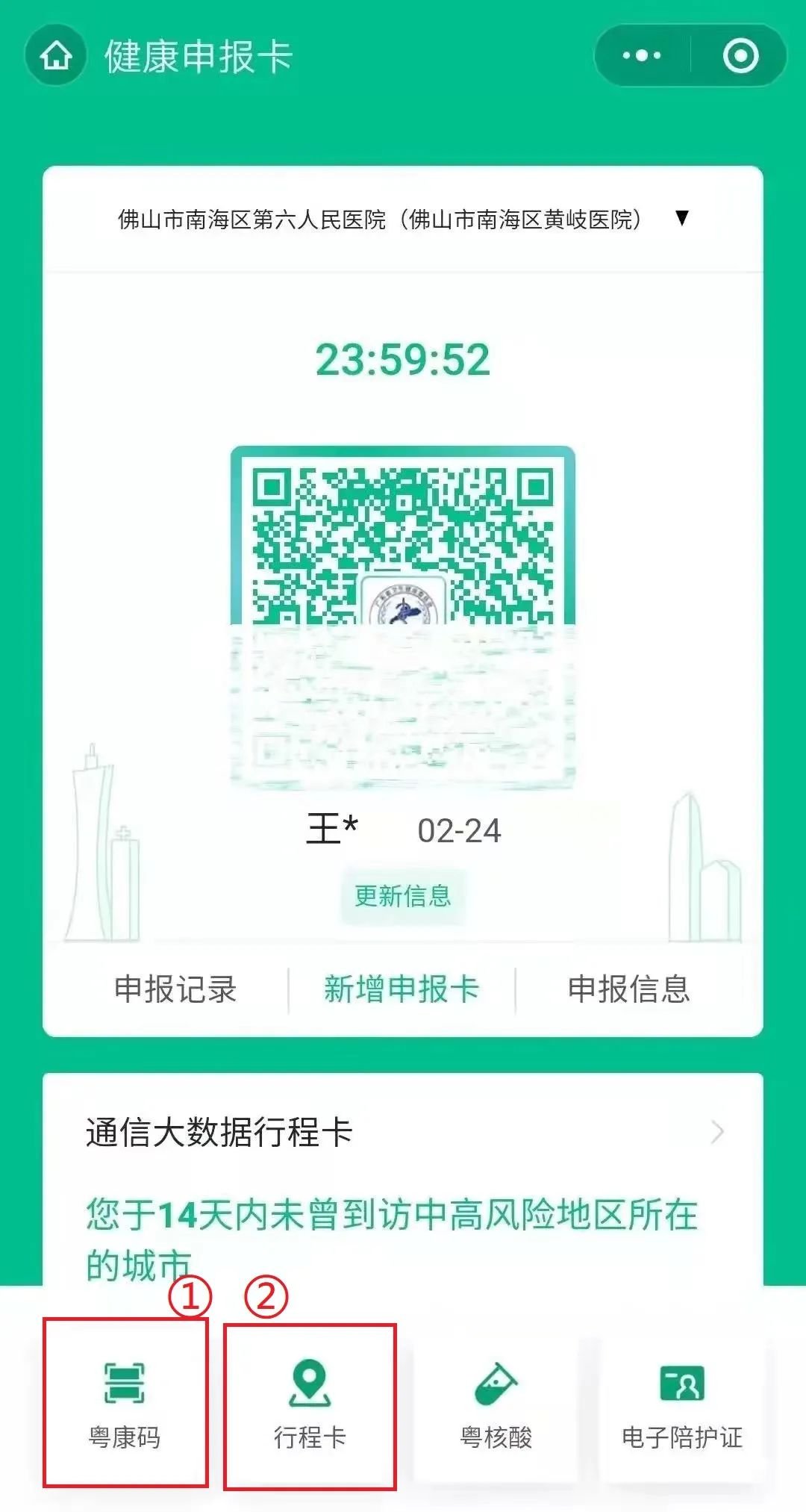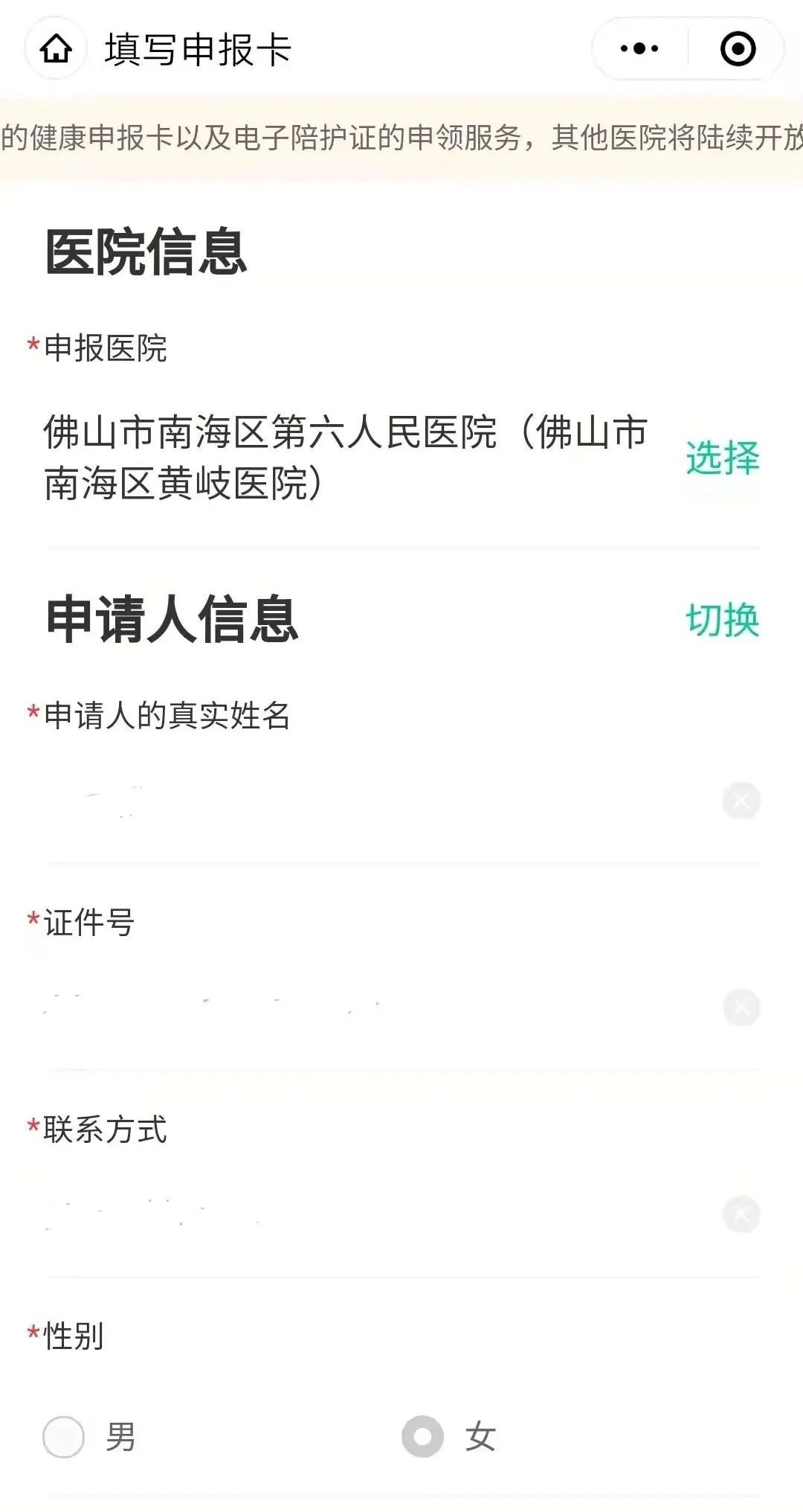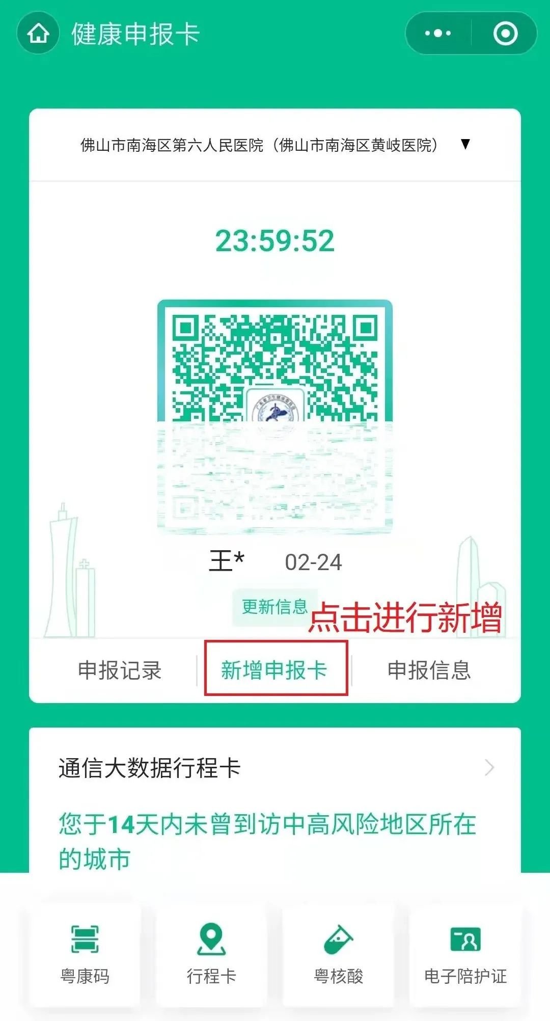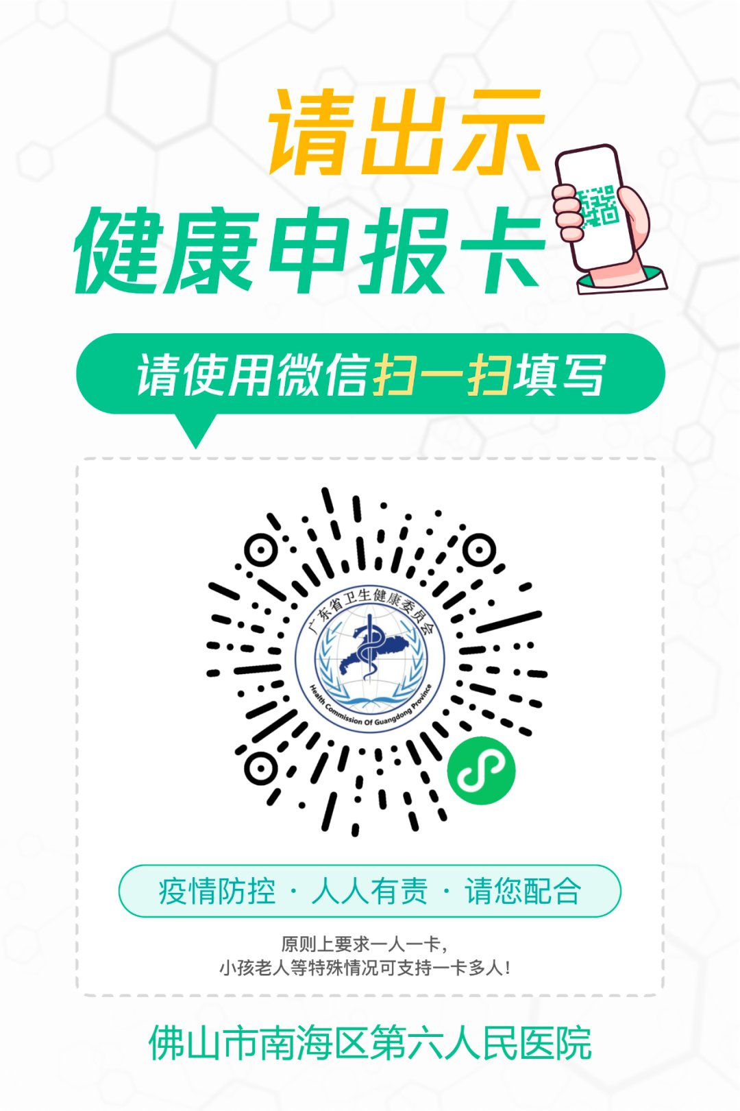 2022年2月25日起,新的健康申报卡在佛山市南海区第六人民医院上线了。