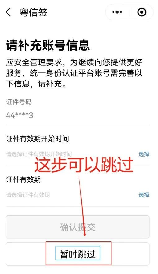 首次使用需要跳转“粤信签”小程序进行人脸识别(无法识别的小孩或老人请在现场填写申报表)(点击查看大图):