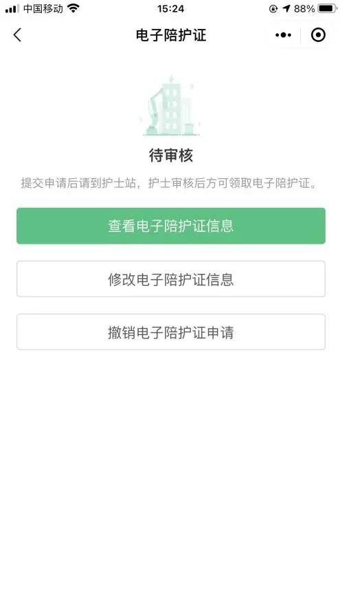 4、医院审核完成后,再次进入[电子陪护证]页面即可看到电子陪护证信息。