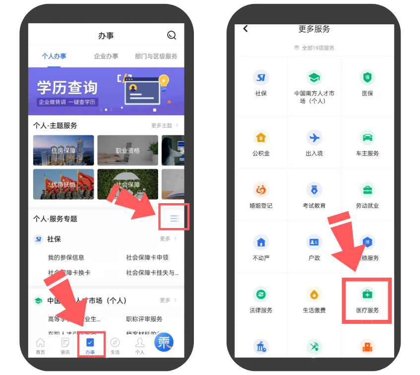 1.打开“穗好办”APP“办事”页面进入“更多服务”专题,点击“医疗服务”;7b1育儿早教网