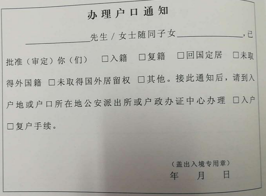 申办报告、父母双方的居民身份证、父母双方居民户口簿、父或母一方的结婚证、小孩出生证、广州市出入境管理部门《办理户口通知》(样例如下)。