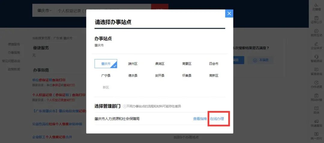 1.登录广东政务服务网(https://www.gdzwfw.gov.cn/),搜索单位参保证明查询打印。选择办事站点后,点击在线申办。