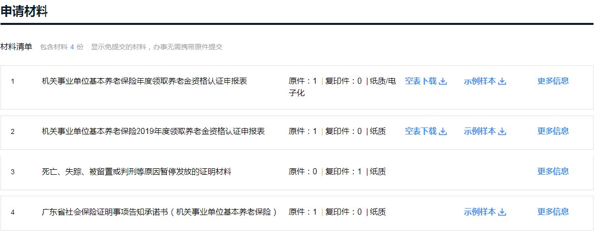 网上办理流程:1.参保单位可通过数字证书登录网上服务系统(https://jgwb.gdsi.gov.cn/jbwtqt/)界面下载《机关事业单位基本养老保险年度领取养老金资格认证申报表》;