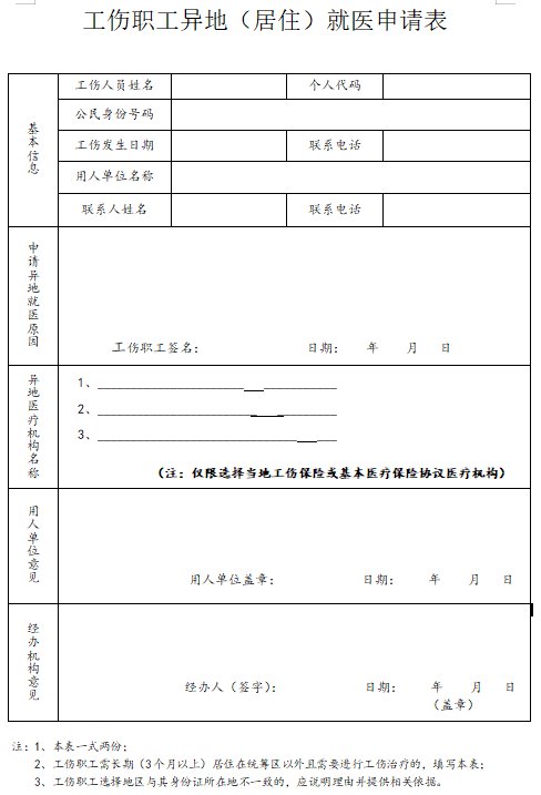 直接下载:工伤职工异地(居住)就医申请表(建议办理前拨打0510-12333,确定申请表是否为最新的格式)Z3O育儿早教网