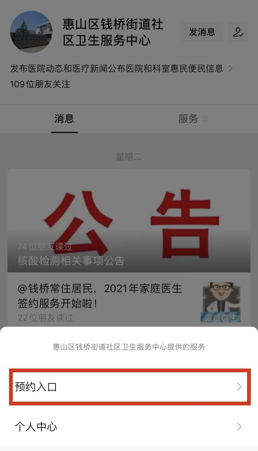 1.微信关注“惠山区钱桥街道社区卫生服务中心”公众号