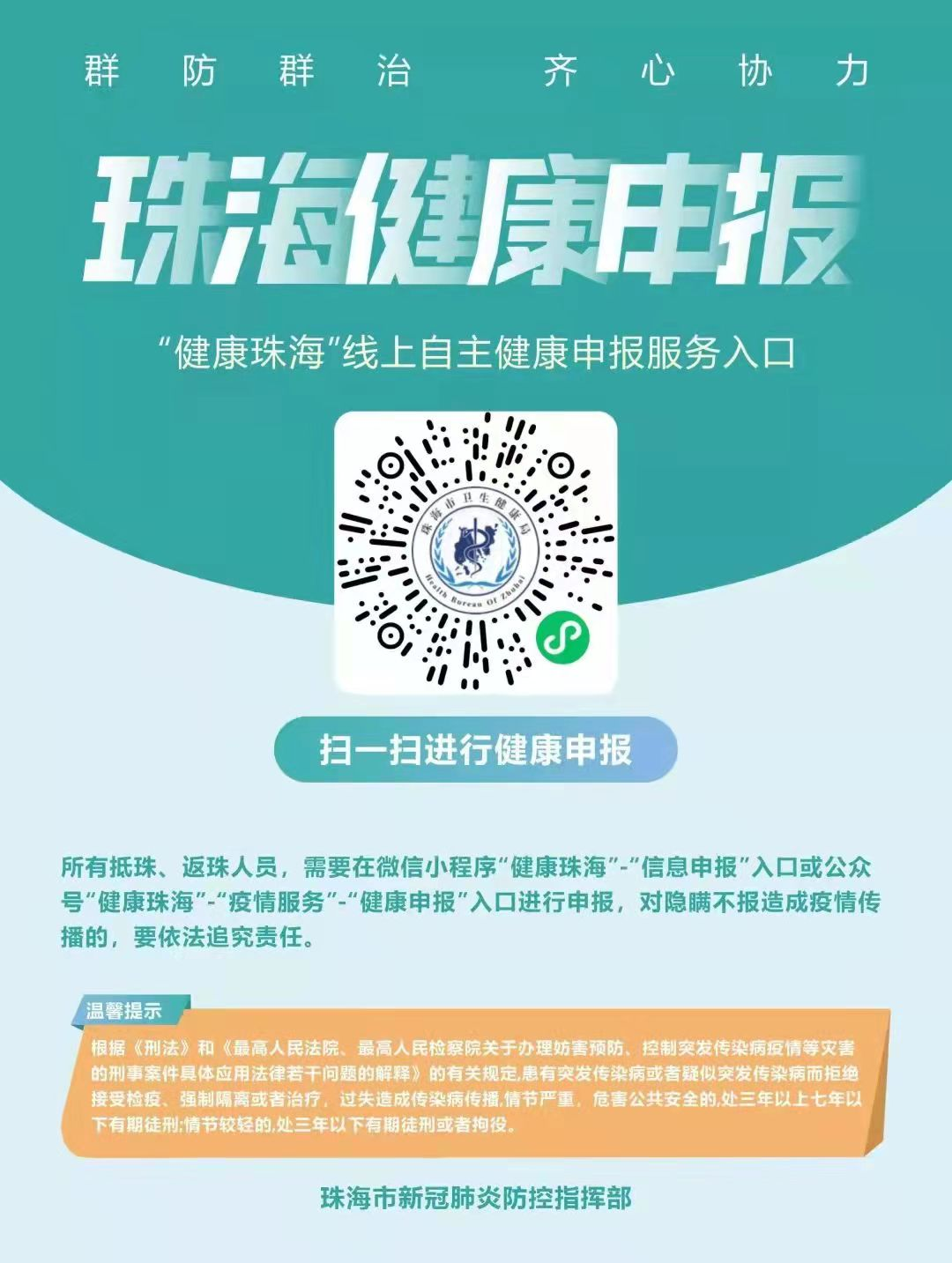 珠海市新型冠状病毒肺炎疫情防控指挥部