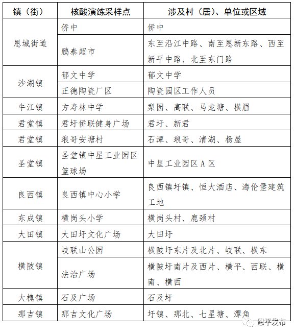 恩平市定于8月31日(星期二)晚上19:00-21:00在恩平市11个镇(街)部分区域开展大规模核酸检测实战演练。