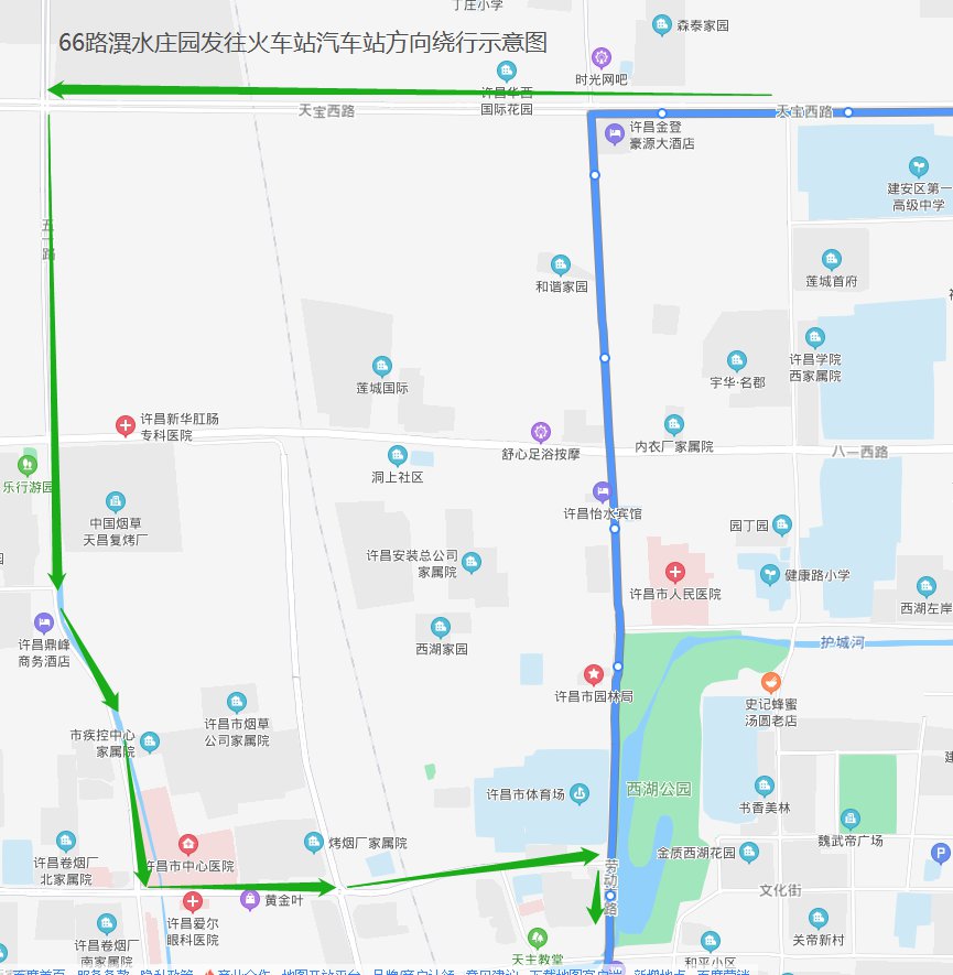 (绿色为绕行路段)图源:许昌公交