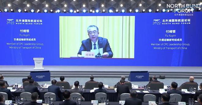 11月22日,付绪银以交通运输部党组成员的身份在“2022北外滩国际航运论坛”上发表主旨演讲。
