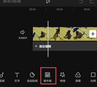 3、点击“画中画”,选择添加一段视频。fxl育儿早教网